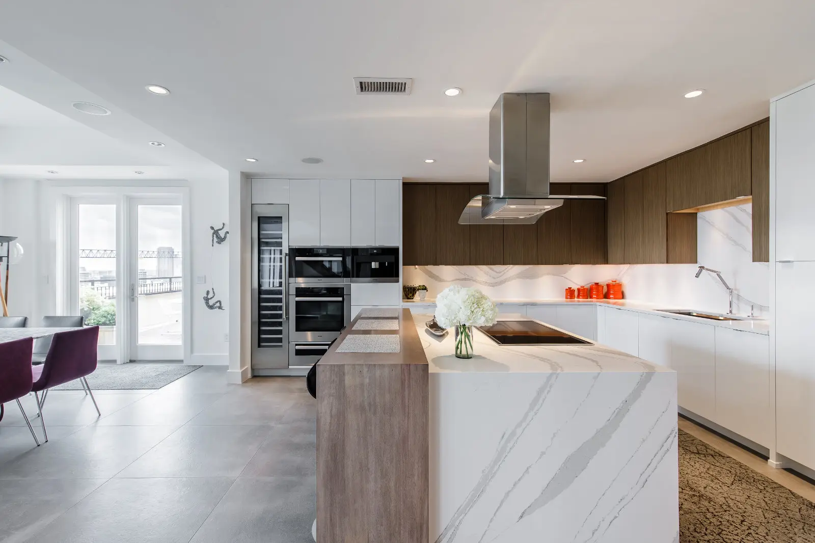 This penthouse kitchen remodel in Dallas transforms a high-rise residence above the Katy Trail into a sleek, sophisticated culinary sanctuary. Located in the upscale Travis Condominiums, the project blends minimalist architecture with rich, luxurious materials—tailored for a homeowner who values refined design and effortless functionality.